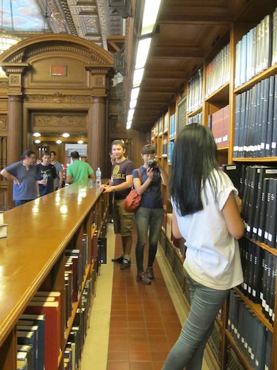 Of course the magnificent Fifth Avenue library building should be appreciated by as many as possible, but the hordes now overwhelming the guards and librarians need to be actively policed. This month’s NYPL press release says of the Rose Reading Room: “The entire Room is designated for research and quiet study and there is a small viewing area where visitors can admire and take non-flash photography of the room and ceiling.” That is not the situation unfolding. (text continues below the photos)
